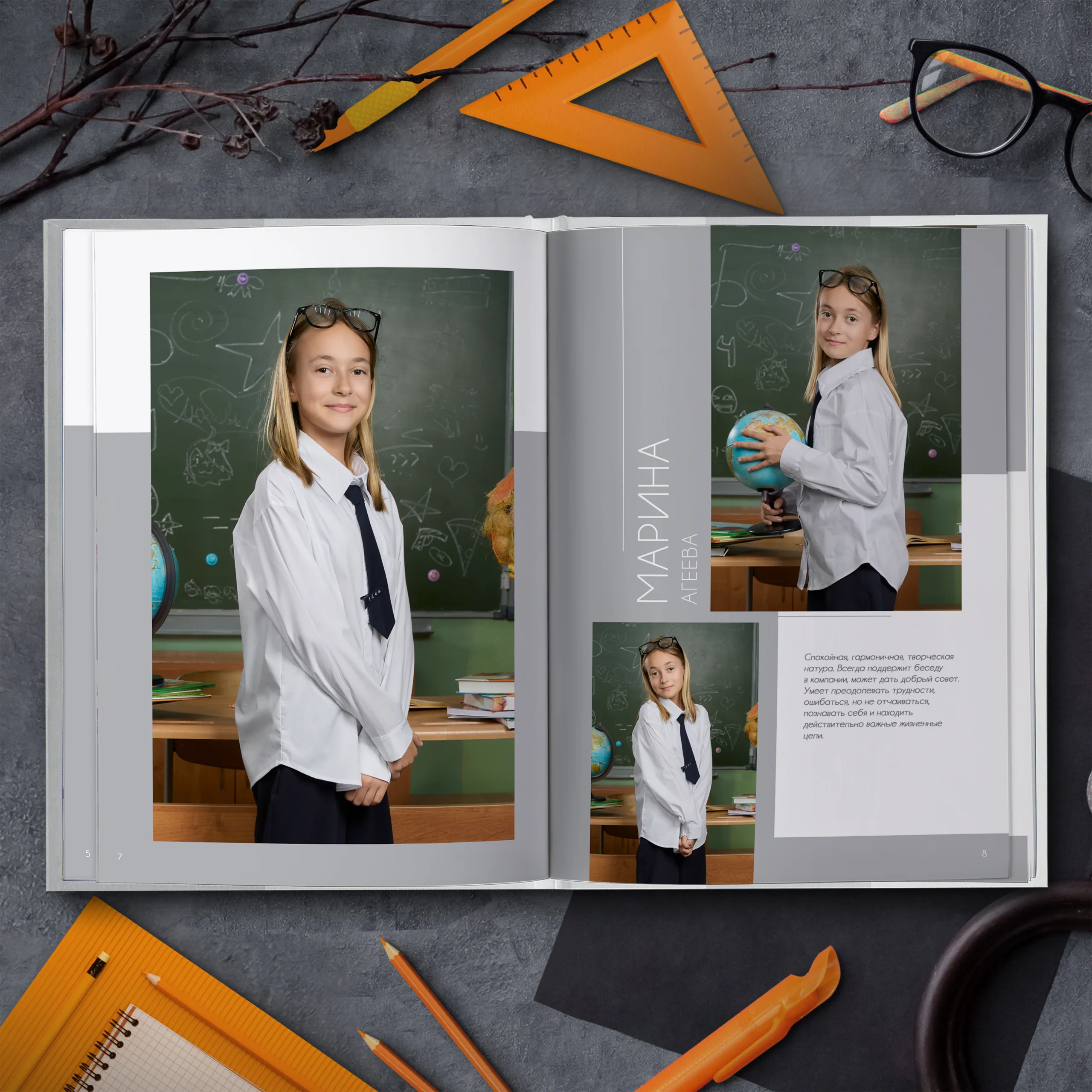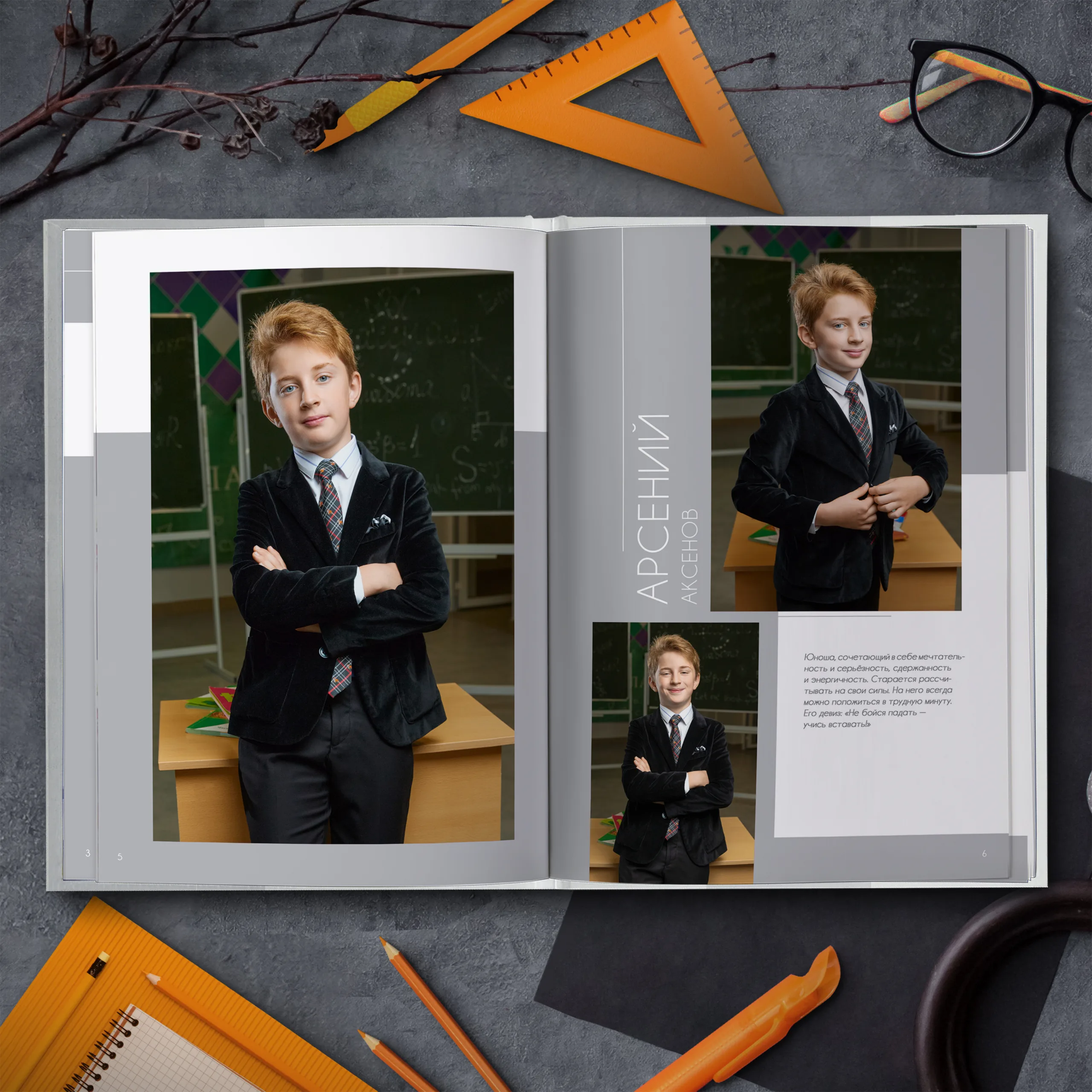 • Две личные страницы ученика с репортажными фото